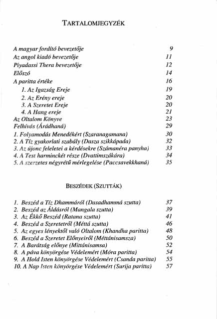 Ez egy antológia a Buddha válogatott beszédeiből, melyet a hajdani tanítók állítottak össze. Ez az a szöveggyűjtemény, melyet a páli eredetiből Piyadassi Thera lefordított. Eme beszédek, nem csak a théraváda buddhistákra, de a mahájána buddhistákra is különös vonzerővel bírnak. Érdekes felfedezni ebben az antológiában a Buddha tanításának a könnyebben érthető oldalát éppúgy, mint a mélyebb oldalát. Eltekintve ezek hitelvi értékétől, a válogatott beszédek, mikor recitálják, védelmet nyújt a félelem, a balszerencse és a rossz egészségi állapot ellen, melyeknek örököse az ember.